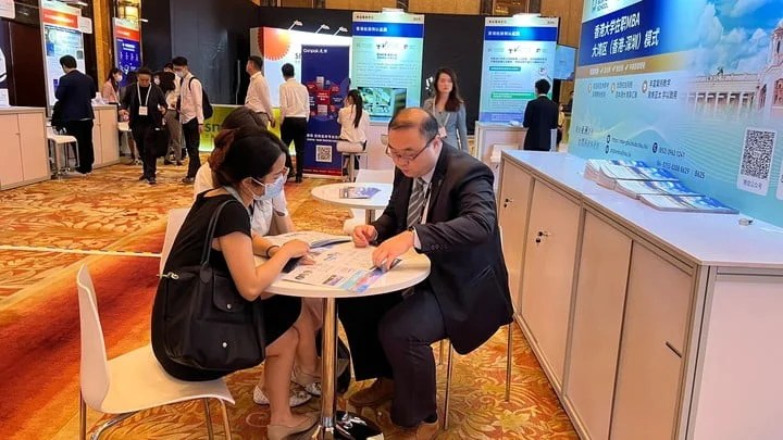 由贸发局主办的“粤港合作周”活动在广州开幕,其中一个重点活动、“推动高质量发展 • 香港论坛”,在场内设有展览,由70间来自香港的参展商,向内地企业代表介绍自身的专业服务,现场亦有商贸配对服务,为香港展商与大湾区企业代表,提供一对一业务及合作洽谈的机会。