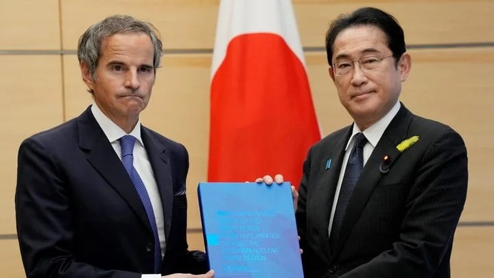 國際原子能機構總幹事格羅西到訪東京,下午與日本首相岸田文雄會晤,並提交福島核污水排海的全面評估報告。報告指出,有關計劃符合國際原子能機構訂定的安全標準。格羅西在報告中表示,基於綜合評估,國際原子能機構得出結論,日本相關的排放方法和活動,符合國際安全標準。