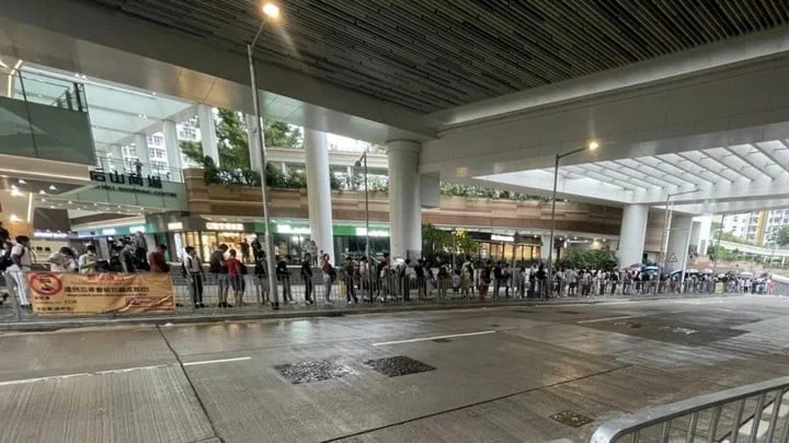 粉嶺皇后山邨在周一開學日,交通交匯處早上繁忙時間出現排隊等車的人龍,人龍長達百米,有過百人候車,引起居民不滿。