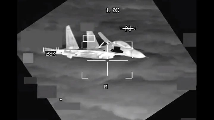 在中共中央政治局委員、外長王毅出訪美國之際,美軍今日公布,一架美軍B-52轟炸機日前在南海,被解放軍戰機攔截,雙方差點碰撞。美國印太平司令部發放片段,顯示美軍轟炸機星期二晚在南海上空飛行期間,一架解放軍殲11戰機快速逼近,在美軍轟炸機的機翼下方和前方掠過,雙方最近距離只有3米(約10英呎)。