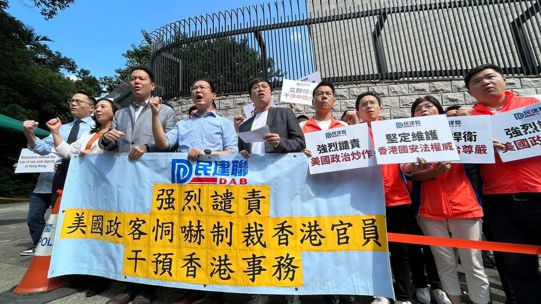 工联会强烈谴责美国政客恐吓维护国家安全的香港特区人员,干预香港内政。立法会议员陈颖欣批评美国议员提出制裁香港官员,是双重标准,如果他们继续有关行为,不排除会将抗议行动升级,联同更多市民,每日到美国驻港总领事馆抗议。