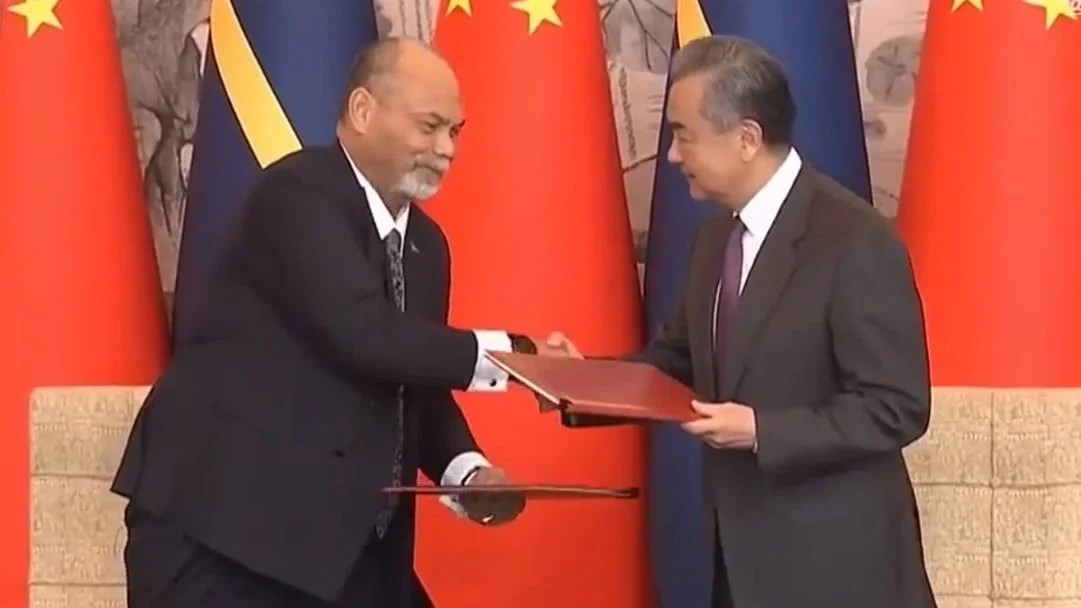 早前宣布與台北斷交的太平洋島國瑙魯,與中國恢復外交關係。中共中央政治局委員、外交部長王毅在北京,與瑙魯外長安格明舉行會談,並簽署聯合公報,兩國即日起恢復大使級外交關係。
