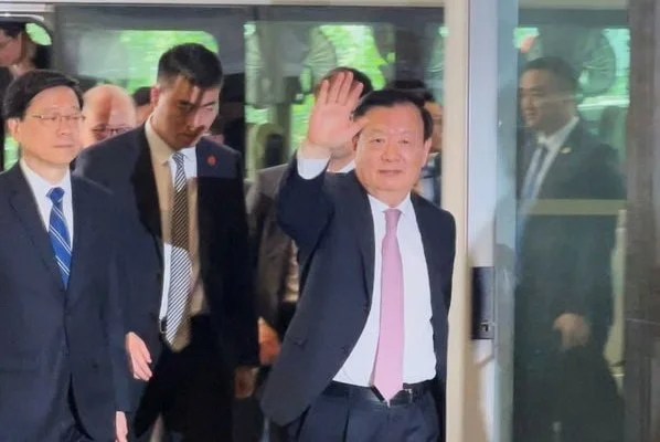 国务院港澳办主任夏宝龙抵港考察调研第4日,下午在行政长官李家超陪同下,在政府总部会见大律师公会、律师会和传媒界代表后,下午5时前抵达警察总部,并在车上向在场的记者挥手。夏宝龙早上到黄大仙饮茶,又到深水埗视察社区客厅的运作。