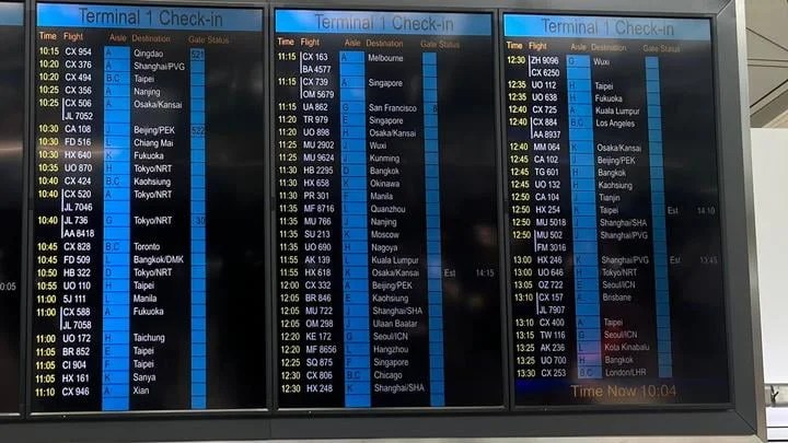 有航空公司職員指,登機系統可以如常運作,他們亦可以在系統看到登機閘口,不少旅客都到櫃枱查詢。國泰航空表示,辦理登機及航班運作如常,但乘客啟程將稍有延誤,建議旅客提早抵達機場,以預留足夠時間辦理登機手續及登機。