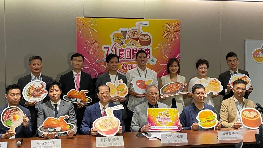 饮食界8个商会和多个品牌,将在7.1回归纪念日,推出优惠。饮食界立法会议员张宇人表示,部分食肆会全单7.1折,部分就会在指定菜式提供优惠,笑指自己当日应该不只吃3餐。他希望有2000多间商户参与,会继续努力争取更多商户加入。