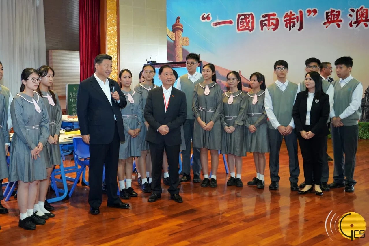 習近平中午前離開學校,校長陳虹指,校方安排了公開課堂,教授一國兩制與澳門的歷史章節,校前校長尤端陽就引述習近平提到一國是本,指一定要守護一國,才有今天兩制的良好局面。