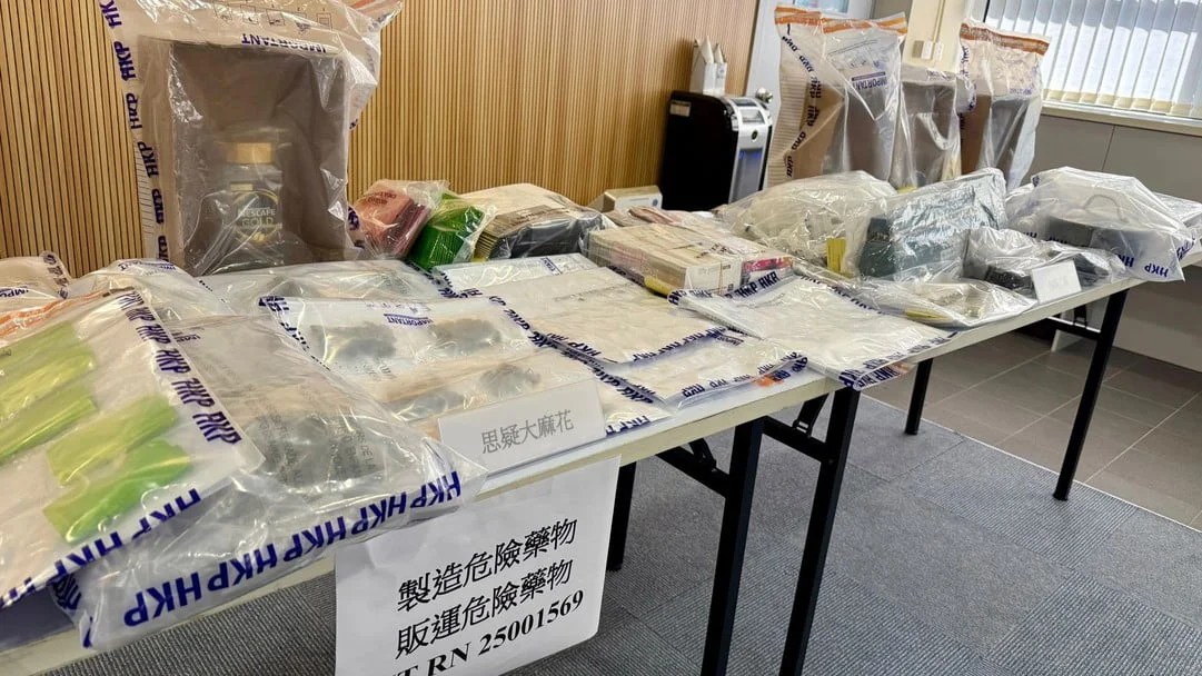 警方星期三截查涉案内地男子,从他身上检获约78克大麻花。其后搜查工厦一个单位,再发现近2公斤大麻花、1.8公斤大麻糖、350多支大麻油烟弹,以及一批制造大麻油烟弹的材料及工具;另外亦检获46克氯胺酮、31克可卡因。