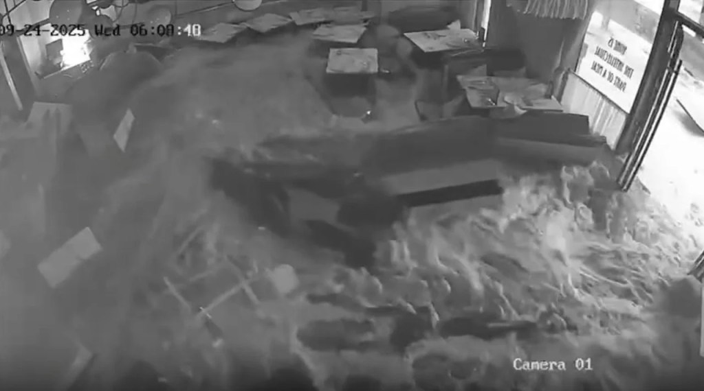 负责人Anna表示,餐厅距离海边约30米,设有挡水板,开业两年多,以往都用相同方法抵御台风。从闭路电视片段看到,巨浪冲开餐厅大门,洪水涌入餐厅,推走枱櫈,并涌入厨房,整间餐厅被水淹没。他与丈夫看到闭路电视时都很伤心。