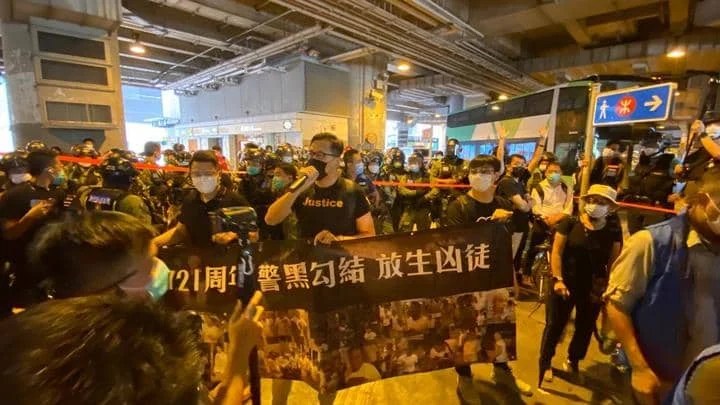 民主黨立法會議員林卓廷及尹兆堅,今日帶同去年7.21傷者,到元朗站外召開記者會,元朗港鐵站內有大批防暴警員戒備,站外拉起封鎖線,警方在現場廣播呼籲市民不要聚集。警方多次警告後,向8名涉嫌違法的集結者發出傳票。