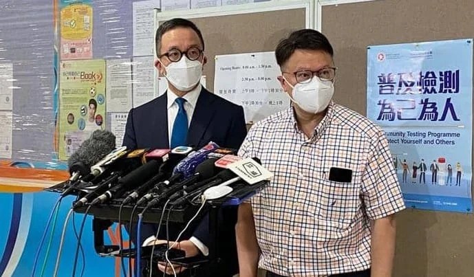 政府專家顧問、中大醫學院呼吸系統科講座教授許樹昌,以及港大醫學院院長梁卓偉,早上到設於沙田源禾路體育館的檢測中心互相採樣。許樹昌說,先抽取鼻腔樣本,再檢取咽喉樣本,大約兩分鐘完成,期間無感到不適;又指採樣場地寬敞,整個流程幾乎不用等候,不會有人群聚集問題,重申越多人做檢測越好,有助找出隱形傳播鏈。梁卓偉表示,本港近日疫情已經受控,但社區有潛在爆發風險,要盡快切斷隱形傳播鏈。