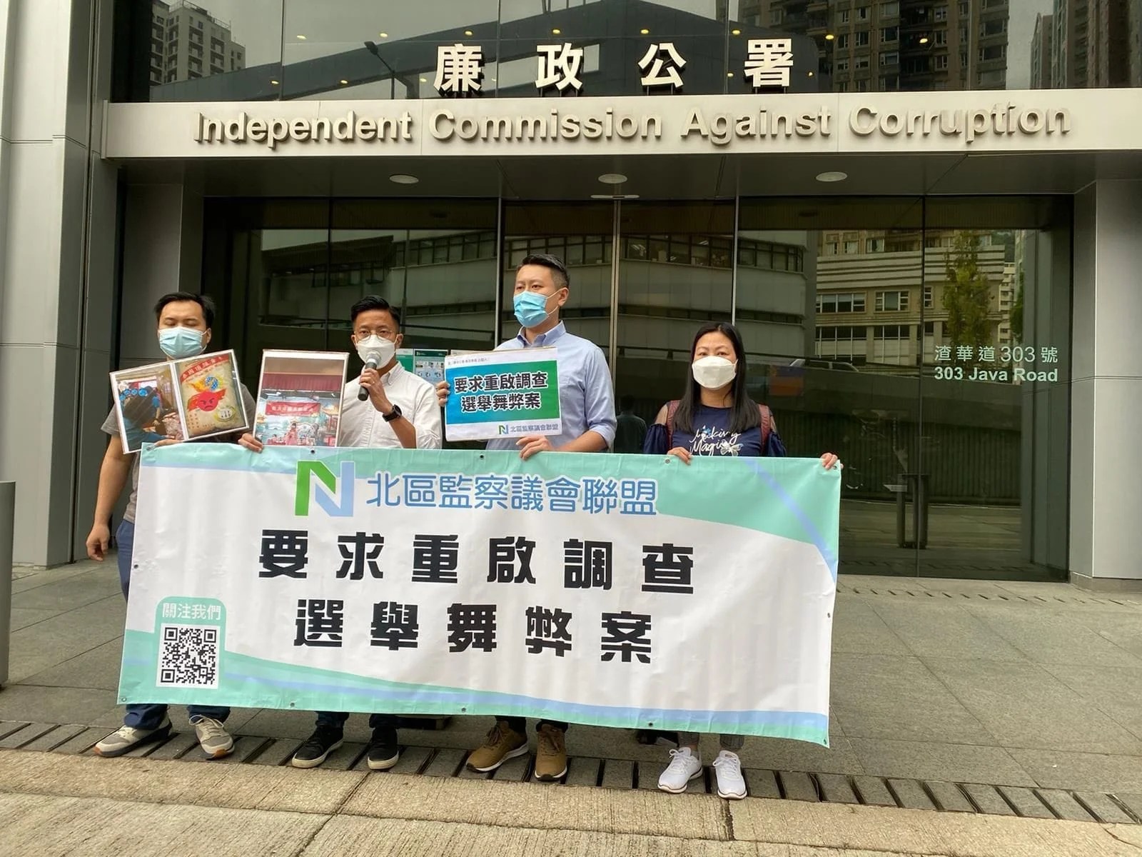 北区监察议会联盟成员前往廉署总部,要求就一宗涉及前年北区区议会选举的舞弊案重启调查。
