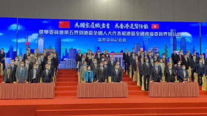 約200名港區人大代表及港區政協委員,以選委會當然委員身份見傳媒。全國人大常委譚耀宗,被問到日後會否提名民主派參選人時說,作為當然委員,是「國家隊」亦是「香港隊」,會小心履行選委職責,選出有能力的愛國者作為管治團隊,他又引述國務院副總理韓正表示,完善選舉制度並不是刻意剔除任何人,並非要搞清一色。