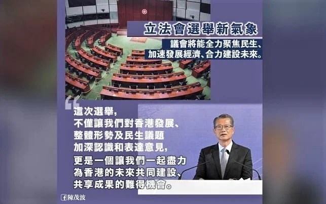 財政司長陳茂波發表網誌,表示新選舉制度可讓社會對香港發展、整體形勢和民生議題加深認識和表達意見,亦是為香港的未來共同建設、共享成果的難得機會。