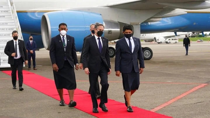 美国国务卿布林肯由澳洲转往斐济访问,随行的美国官员透露,布林肯在斐济与太平洋岛国领导人举行视像会议时,将会宣布在所罗门群岛设立大使馆,以加强在印太地区抗衡中国。