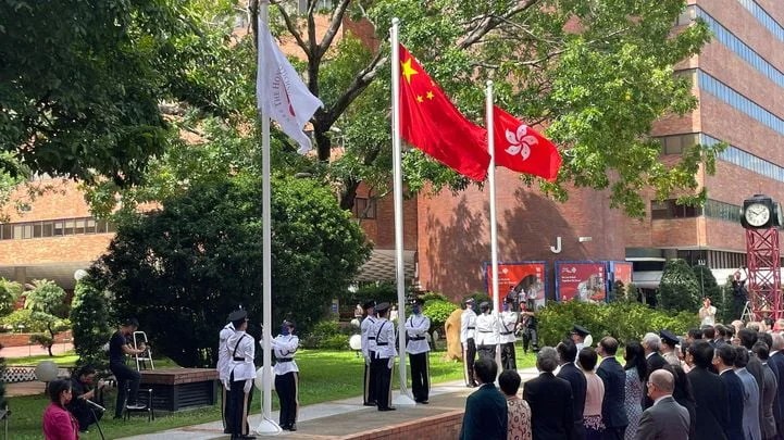 本港多间大学早上举行国庆升旗仪式。在理工大学的升旗仪式,律政司副司长张国钧、保安局局长邓炳强、文化体育及旅游局局长杨润雄及民政及青年事务局局长麦美娟,担任主礼嘉宾。