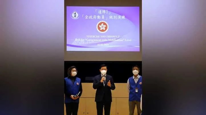 公务员事务局长杨何蓓茵表示,去年12月已落实动员机制的细节,今次在无预先通知下,按既定通讯机制,通知了1万名人员戒备,并测试约300人在指定时间内到达北角社区会堂,模拟在行动前听取简报,所有人都准时到达。