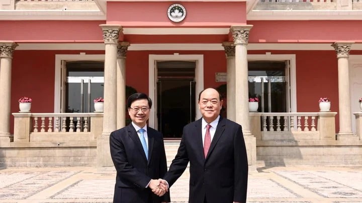 行政长官李家超访问澳门,与澳门特首贺一诚会面。李家超在社交网站表示,与贺一诚谈到不同领域范畴的合作空间,包括促进两地旅游业发展和增加港珠澳大桥的使用等。
